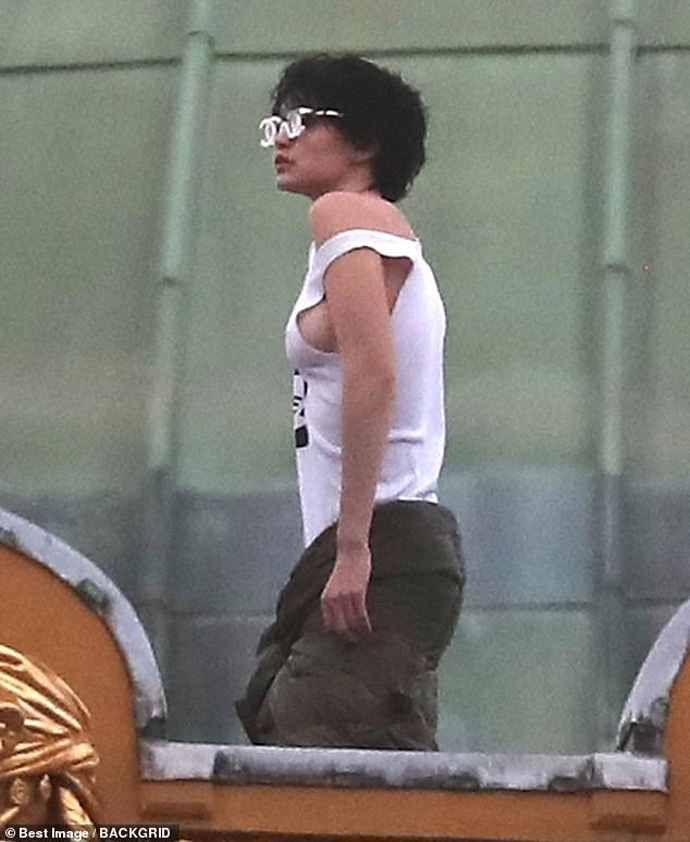 Պապարացիները լուսանկարել են 24-ամյա մոդելին, որը թոփլես կանգնած էր Փարիզի Գրանդ-օպերա թատրոնի տանիքին: Աղջիկը կեցվածք է ընդունել մազերի կարճ կտրվածքով, գոտիով սև գույնի թռչող կիսաշրջազգեստով, երկար ձեռնոցներով և մեծ մարգարտե մանյակով: Մերկ կուրծքը նա ծածկել է ձեռքերով: