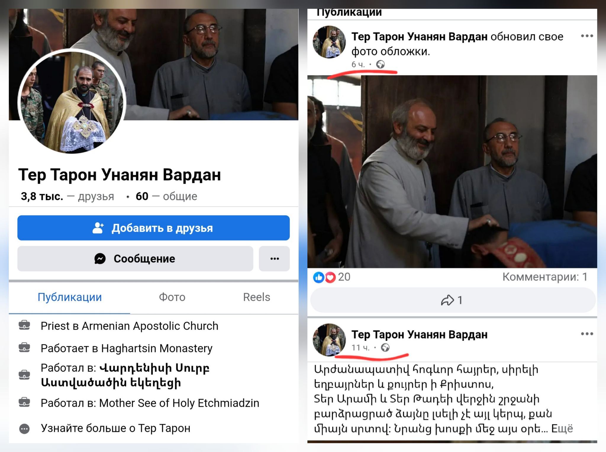 Սա Տարոնն է, ով միացել է ՀԱԵ֊ն դավաճանած, նիկոլական երկու եսիմինչերին… Բայց դրան չեմ ուզում անդրադառնալ, այլ սրա բարոյական, այսինք անբարո կերպարին… Սա իր հակաեկեղեցական և նիկոլամետ գրառումից 5 ժամ ՀԵՏՈ փոխում է իր ֆեյսբուքյան էջի հետնամասի լուսանկարը և տեղադրում իր սիրելի Նիկոլի իշխանության կողմից հետապնդվող և ԱՏԵԼԻ Միքայել և Բագրատ Սրբազաննեիի համատեղ լուսանկարը…